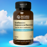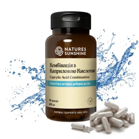 Caprylic Acid Combination (Комплекс с Каприловой Кислотой), содержит в своем составе среднецепочечную жирную кислоту (каприловую). В природе она содержится в пальмовом и кокосовом масле. Данная кислота регулирует процессы роста грибов Candida, поддерживая в норме уровень содержащихся в толстой кишке микроорганизмов. Само же размножение бактерий, которые нужны для здоровья, протекает обычным образом.
