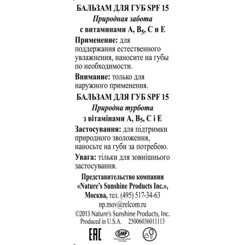 Бальзам для губ SPF15 «Природная забота» предназначен для наружного применения.+