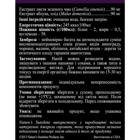 В состав напитка БАД Замброза Zambroza входит сок необычного экзотического фрукта – мангостана, произрастающего в тропических странах, имеющего мякоть белого цвета с приятным вкусом.