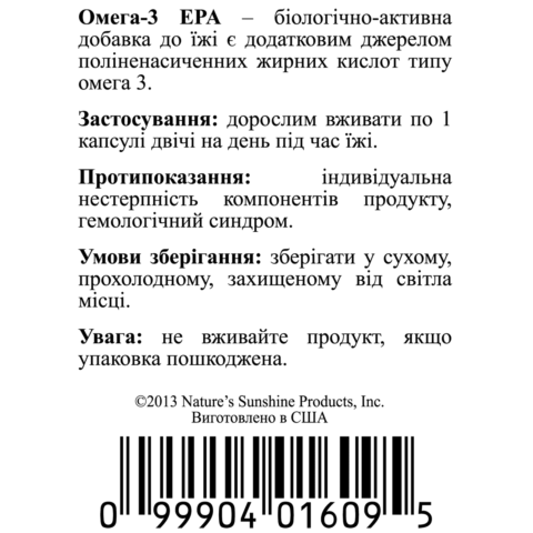 Omega-3 își găsește aplicarea în terapia auxiliară a diabetului, trombozei, hipertensiunii, hiperlipidemiei, bolilor de piele, astmului bronșic. Omega-3 EPA Omega-3 (ulei natural de pește) vine în ajutor și în cazul imunității slăbite.